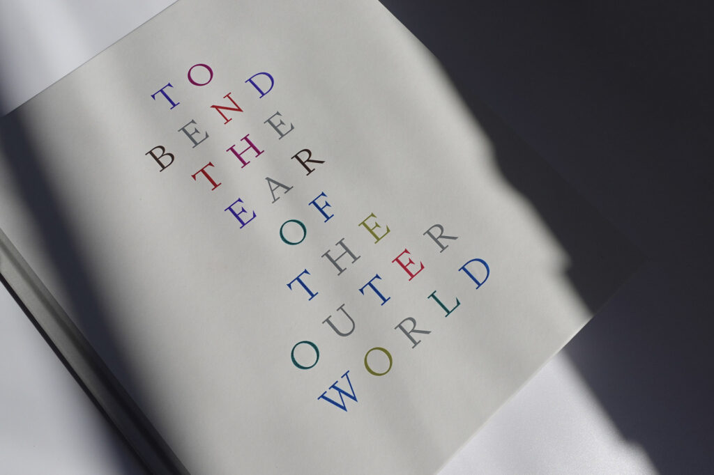 “To engrave such a large area of a book cover is quite surprising and makes quite a statement. Held in the hand, the front cover has nothing to look at except for the engraved type. It takes the eye and invites touch. The book’s recipients will have a high level of visual literacy. Though I wouldn’t expect many to identify the process as engraving, I’m sure it will trigger associations of tactility and a warm resonance with premium old-world print qualities.