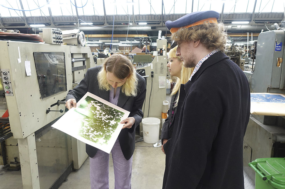 The project allows creative freedom for the artist, but as well as introducing a new medium and process, it also educates them about the limitations and economies of the production process. The final product has to be cut, folded and foiled by machine.